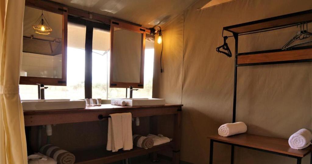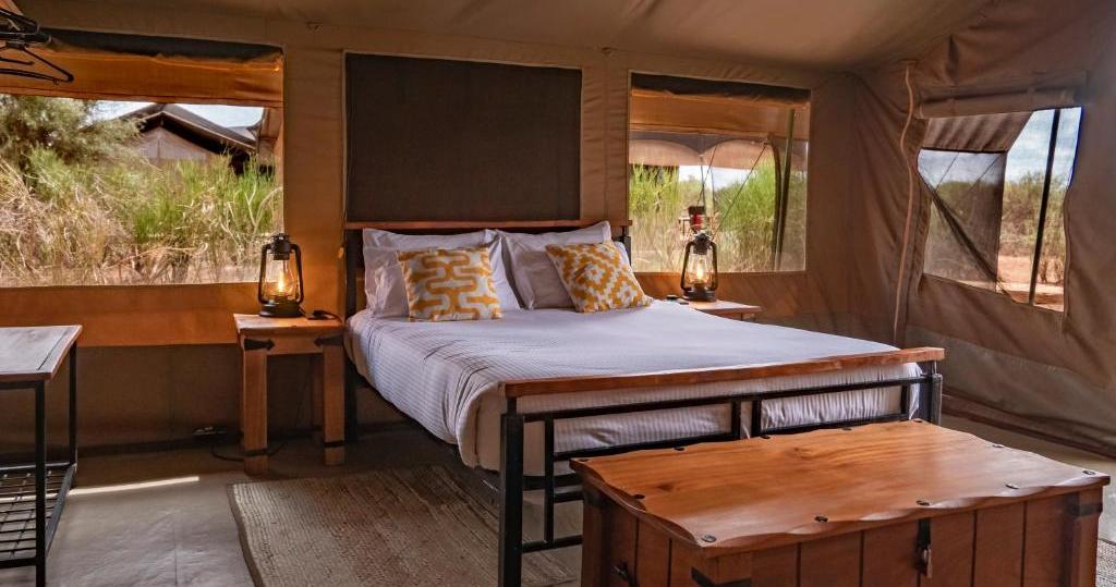 Inde i hvert telt finder du bløde senge og eget badeværelse med rygende varm bruser. Badeværelset har også håndvask og skylletoilet. En kaffe- og tekoger, køleskab, ventilator, hårtørrer og elektroniske pengeskabe findes også i hvert telt.