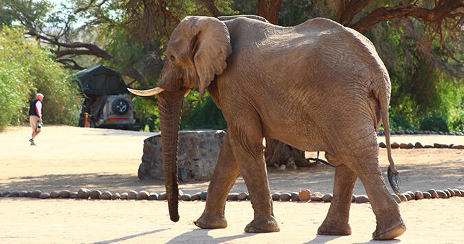 Elefanter er kendt for at vove sig gennem lodgeområdet og campingpladsen om natten, så hold øjnene åbne for disse smukke, gigantiske skabninger. Nyd den robuste skønhed i Damaraland med sin autentiske namibiske karakter! Palmwag campingplads har 13 campingpladser og wifi på lodgen.