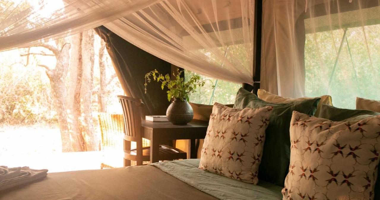Zungulila Bushcamp i South Luangwa, et af Afrikas mest uberørte naturområder. En klassisk teltlejr bestående af fire rummelige Meru-stil telte, alle med eget bad, udendørs bruser og store badekar. Lejren er åben fra april til januar.