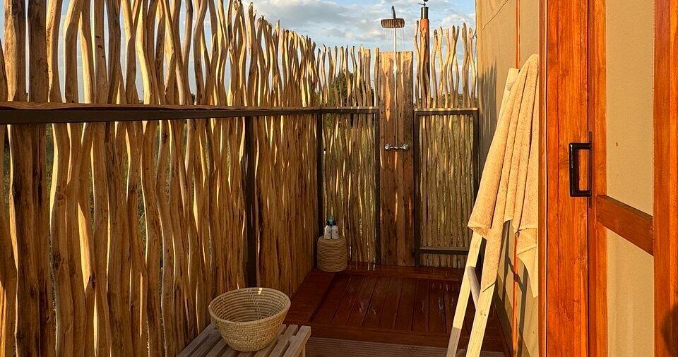 De rummelige telte er opført på hævede træplatforme og har private verandaer med udsigt over den åbne savanne. Hvert telt har eget badeværelse med dobbelt håndvask, toilet samt både en indendørs og en udendørs bruser – perfekt til et forfriskende bad under den afrikanske stjernehimmel. Her kombineres komfort og natur på allerbedste vis.