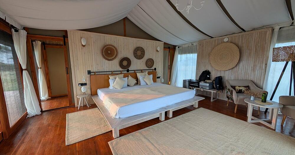 Her findes kun 12 luksuriøse telte, der tilbyder privatliv, komfort og panoramaudsigt. Hvert telt er rummeligt og elegant indrettet med moderne bekvemmeligheder og traditionelt afrikansk design, inklusive eget badeværelse, privat veranda og opholdsområder.